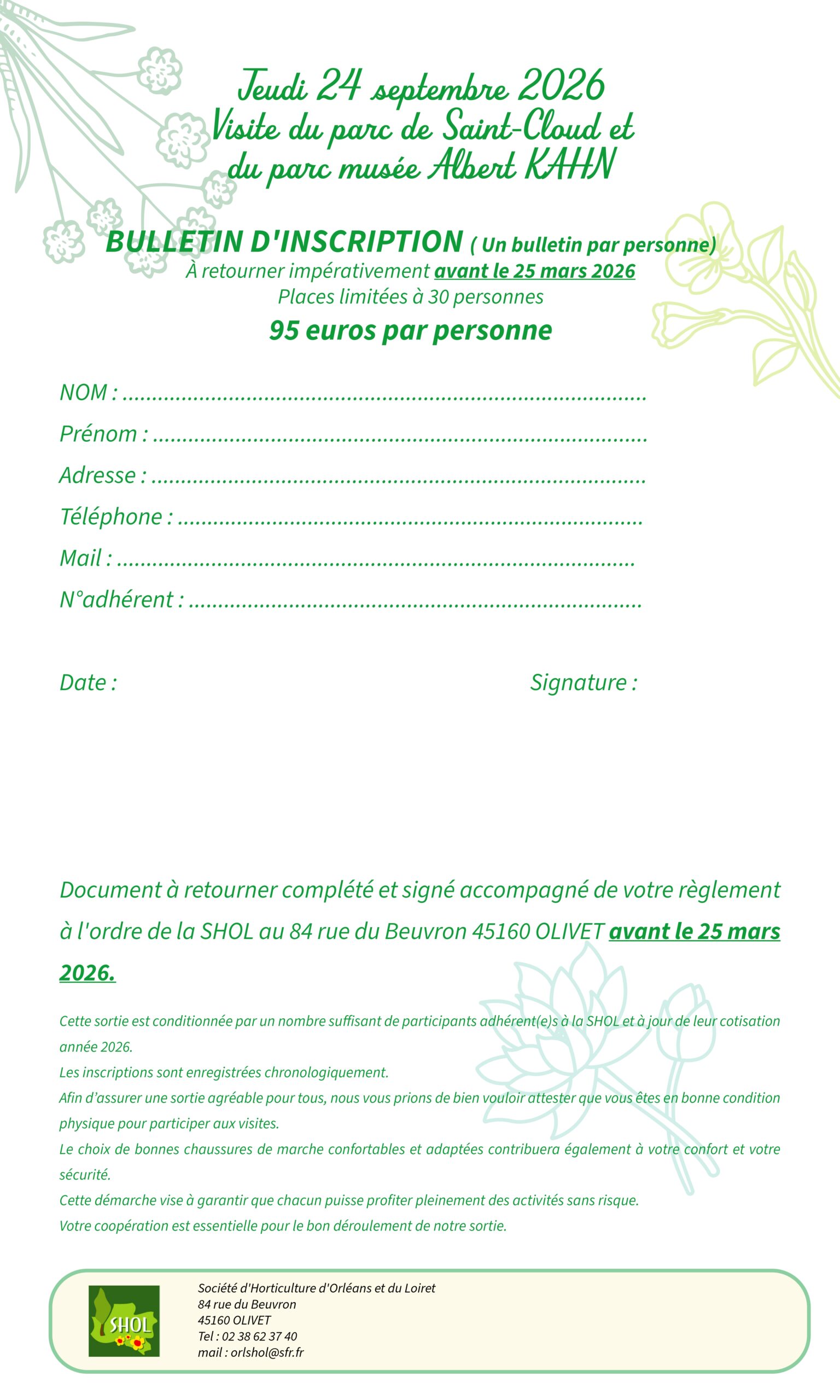 Veuillez communiquer votre bulletin d’inscription et votre règlement au secrétariat :