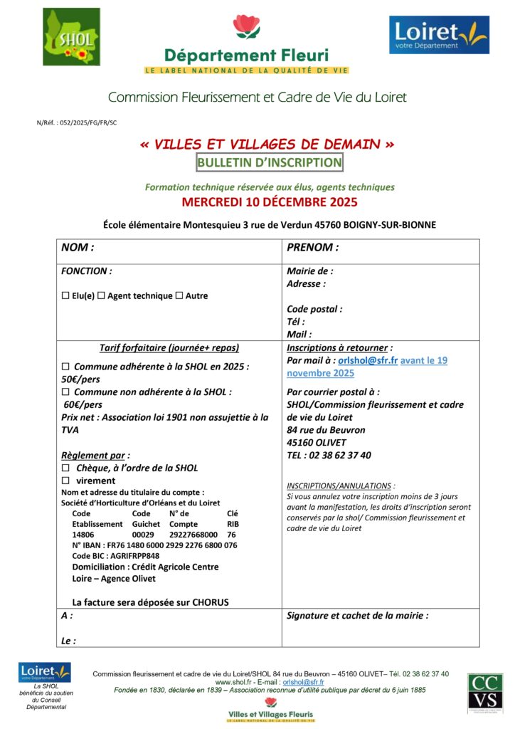 La Société d’Horticulture d’Orléans et du Loiret a le plaisir de convier les élus et agents techniques à une journée de formation consacrée au thème « Villes et villages de demain ».