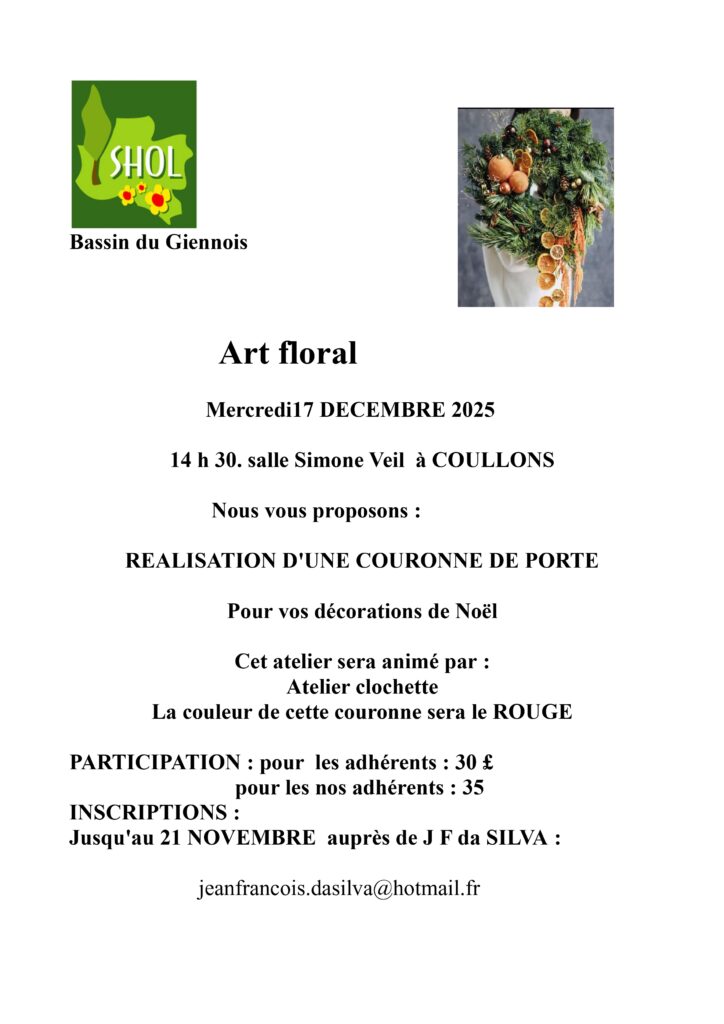 - Art floral : 5 séances par an (4 avec une fleuriste, 1 avec Marie-Laure Bahu en novembre)