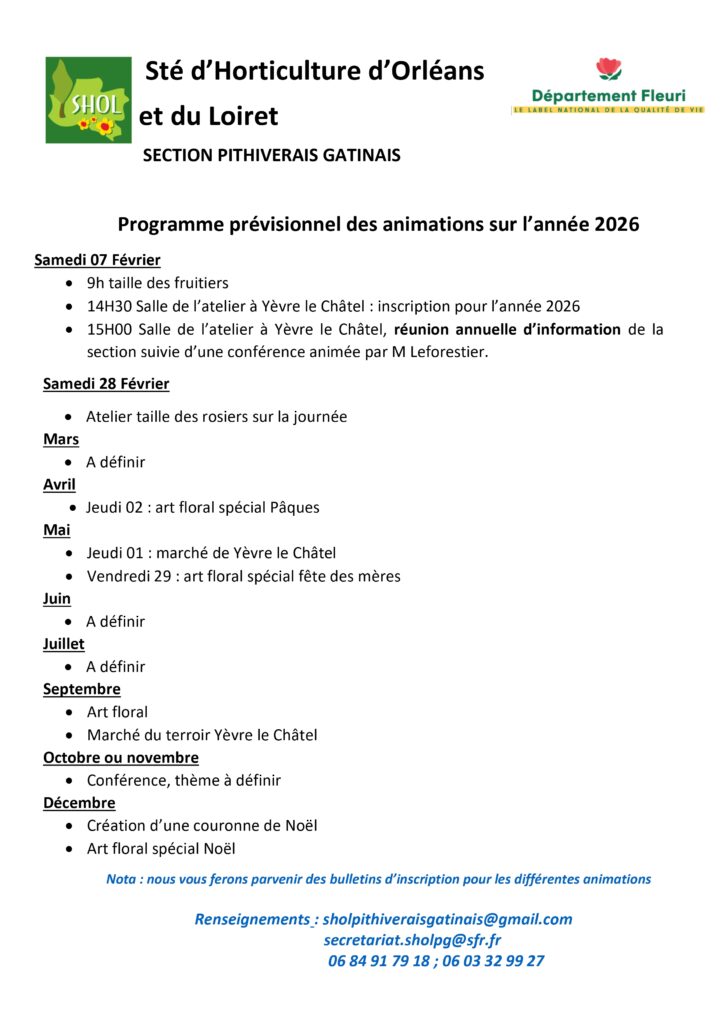 Madame la Maire de Chanteau avait mis la salle des fêtes à notre disposition et près de 70 personnes étaient présentes. Une belle occasion de revenir sur les activités 2025 avec notamment les activités habituelles de la section : art floral, taille, ateliers mais aussi des animations engagées avec d’autres associations locales, les AOJOF, les amis de la bibliothèque de Semoy, les opérations menées avec les communes dont les plantations d’arbres et une nouvelle vente de bouquets au profit d’octobre rose. Il est a saluer aussi l’engagement de bénévoles de la section lors de opérations « iris » dahlias, culture des dahlias, et stand SHOL lors des manifestations au jardin des plantes ou lors de la Saint-Fiacre. 2025 s’ouvre avec de nouvelles perspectives.