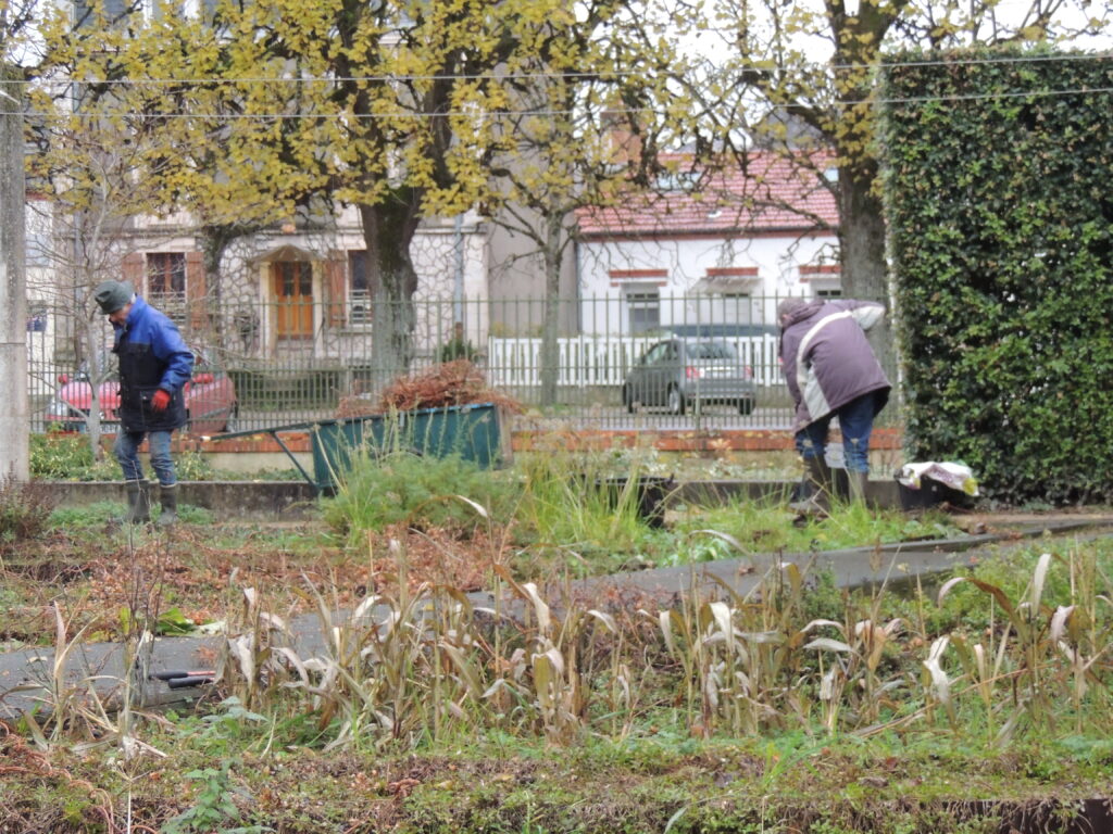 Entre les gouttes, 3 jardiniers ont œuvré afin de permettre au jardin une entrée dans l’hiver. Arrachage de la haie de romarin un peu vieillissante, remplacée par la plante au curry, plants cultivés et fournis par 2 des trois jardiniers du jour.
